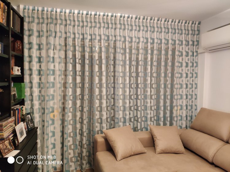 En espacios donde carecemos de suficiente luz ,tejidos traslúcidos como este serán la mejor opción para no desaprovechar esa claridad que tanta alegría da a nuestro hogar. La cortina de techo a suelo y el dibujo vertical nos otorgan mayor sensación de altura y agrandan el espacio. Muy importante también es dar a la tela la cantidad apropiada para sacar el máximo de ella en cuanto a vistosidad, caída y ondas más definidas.